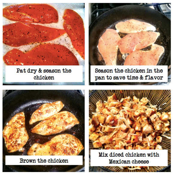 - In a large bowl, combine and mix the cooked chicken and Mexican cheese